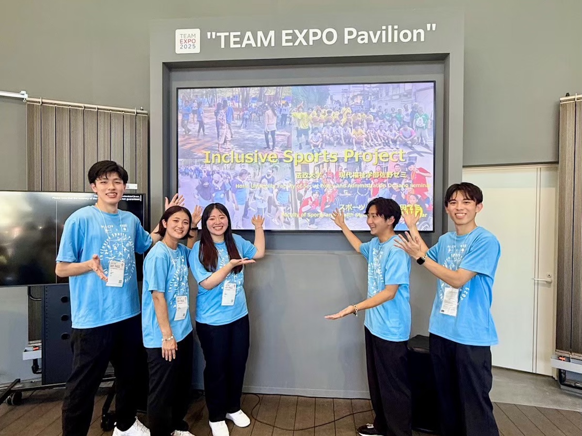 私たちは、大阪・関西万博において、これまでの活動で得た反省点や課題をいかに改善してきたか、そして学生がスポーツを通じて障害や文化などの壁をどのように乗り越え、活動してきたかを発表しました。