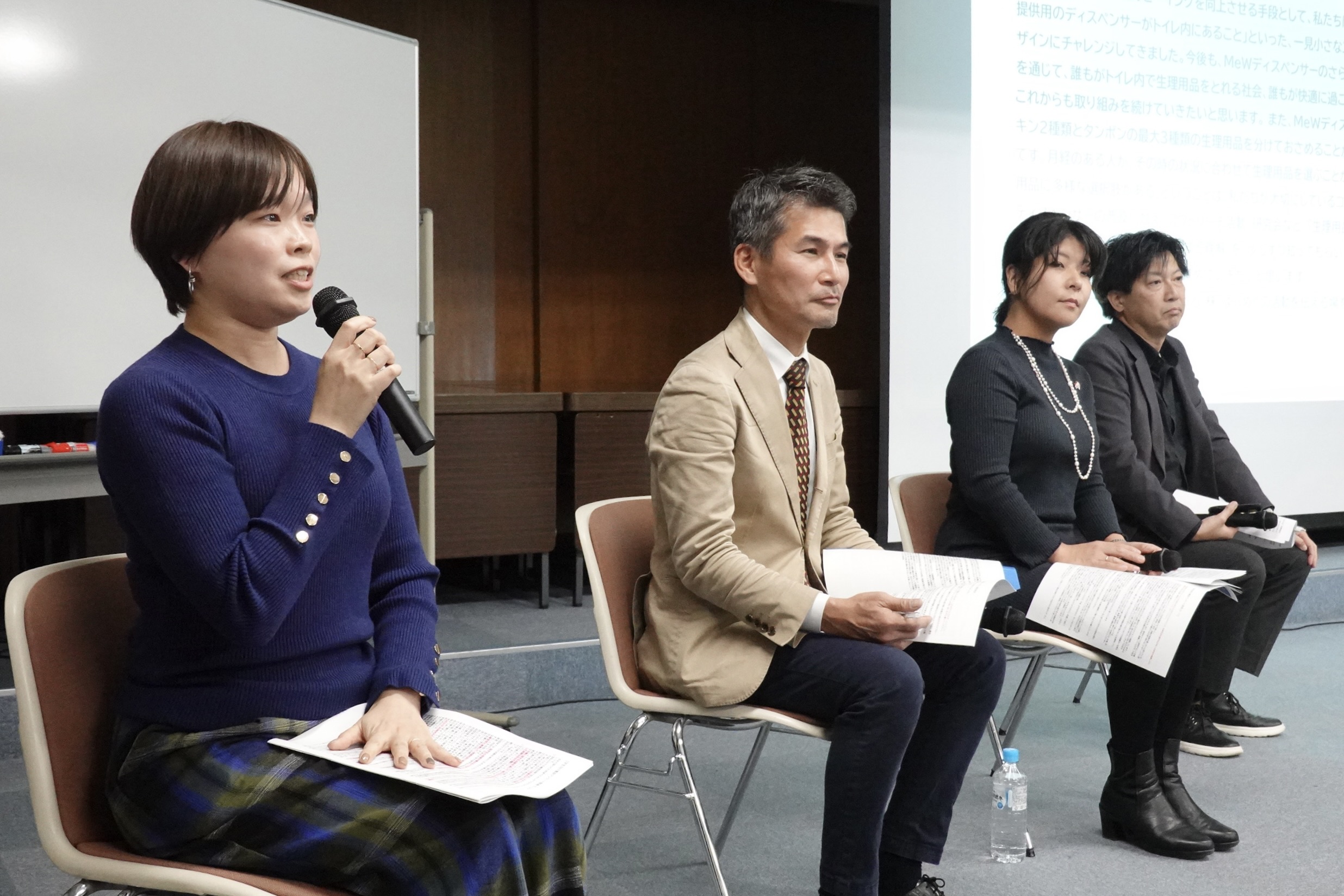 学生取材班や学生レポーターとして、万博のイベントや各企業の取り組みを取材した学生によるトークセッションでは、取材を通して得た気づきや考え方の変化が示された。