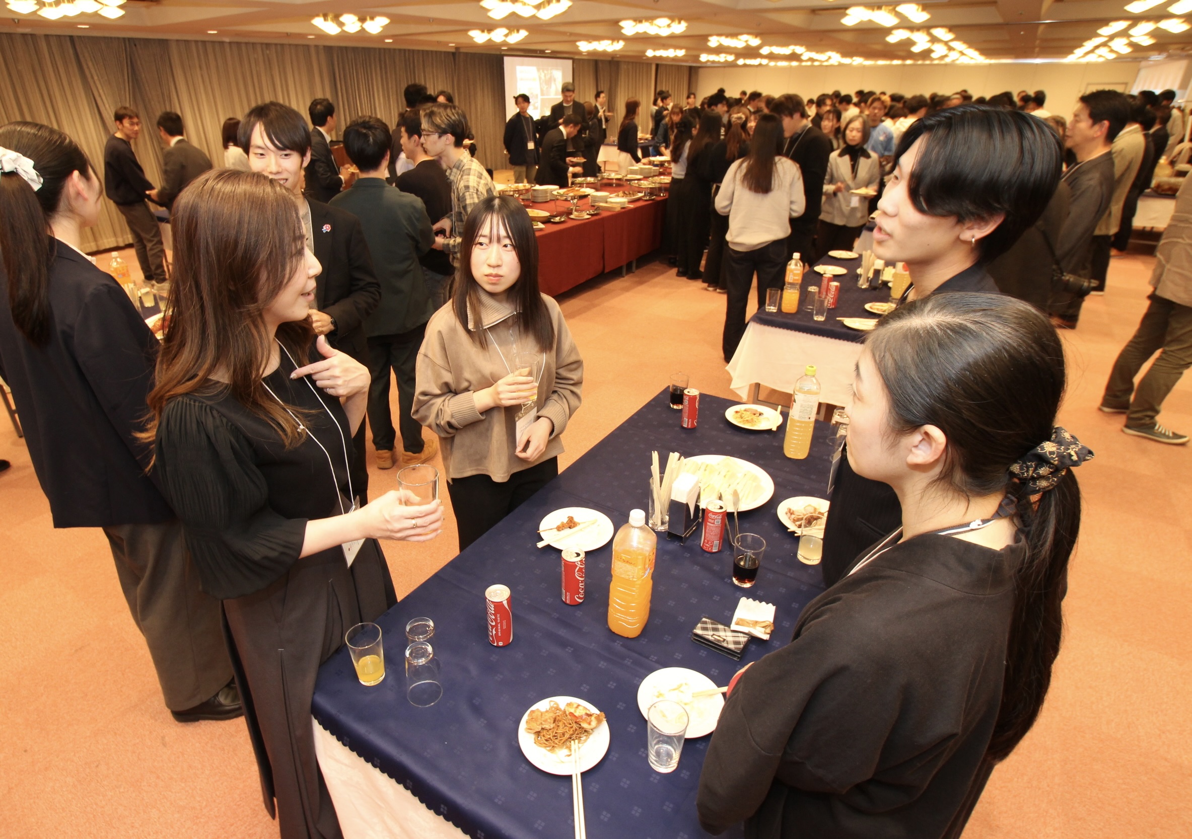 学生と企業・団体の関係者による交流会では、熱心に話し込み、つながりを広げた。